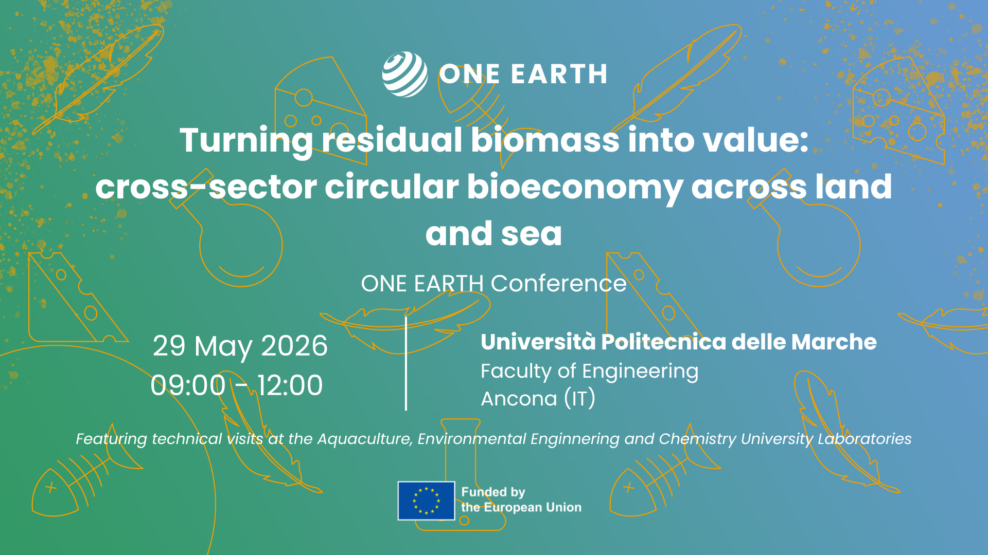 After nearly two years of research, the ONE EARTH project is proud to present the early results towards a circular bioeconomy across land and sea side stream resources. On 29 May 2026, we invite researchers, students, industry professionals and the public to join us at Università Politecnica delle Marche (UNIVPM) in Ancona – in person or online – for a morning of science, industry dialogue and circular bioeconomy in action.